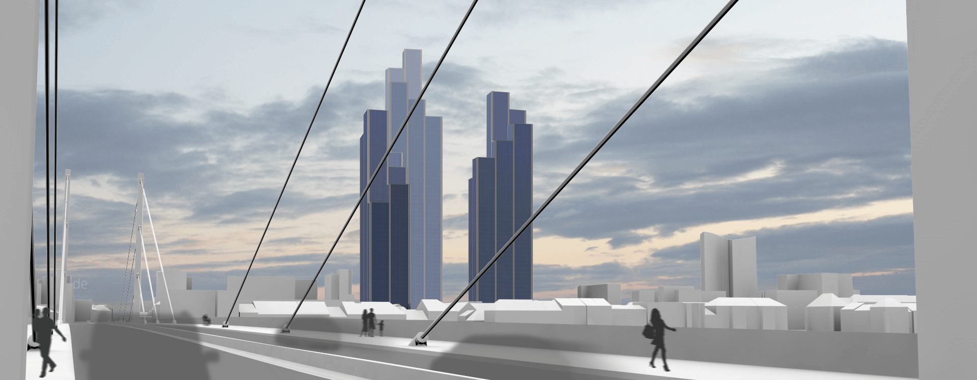 Als Hochhausstudie wurde das Gelände mit einem Entwurf der Düsseldorfer Heights bespielt um die Hochhausdiskussion der Stadt weiter anzuregen.